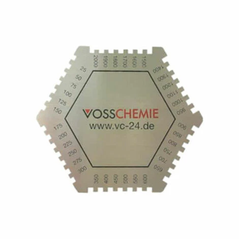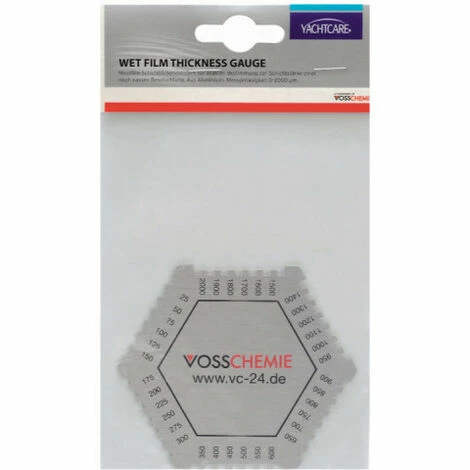 Jauge d’épaisseur de film humide Yachtcare. Cet outil, de type peigne hexagonal, est extrêmement facile à utiliser. Un incontournable à disposer dans sa caisse à outils. Il permet de mesurer l’épaisseur d’un film encore humide.