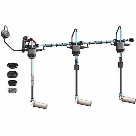 Kit de rechange universel pour les systèmes de prélèvement existants pour les cuve en batterie jusqu’à 2 m de haut Raccord cuve DN 40 (1 1/2) avec adaptateur inclus G2, M 60 x 4, S75 x 6, bride Diam. 68 mm Protection efficace contre les dégâts de débordement grâce à la surveillance de toutes les citernes Convient pour tubes de 8 ou 10 mm (les tubes ne sont pas compris dans la livraison) Convient pour fioul (DIN 51603-1), carburant diesel (EN 590) ayant chacun jusqu´à 20 % d´EMAG Homologations: – CE selon EU-BauPVO (EN 13616) – DIBt: Z-65.17-182